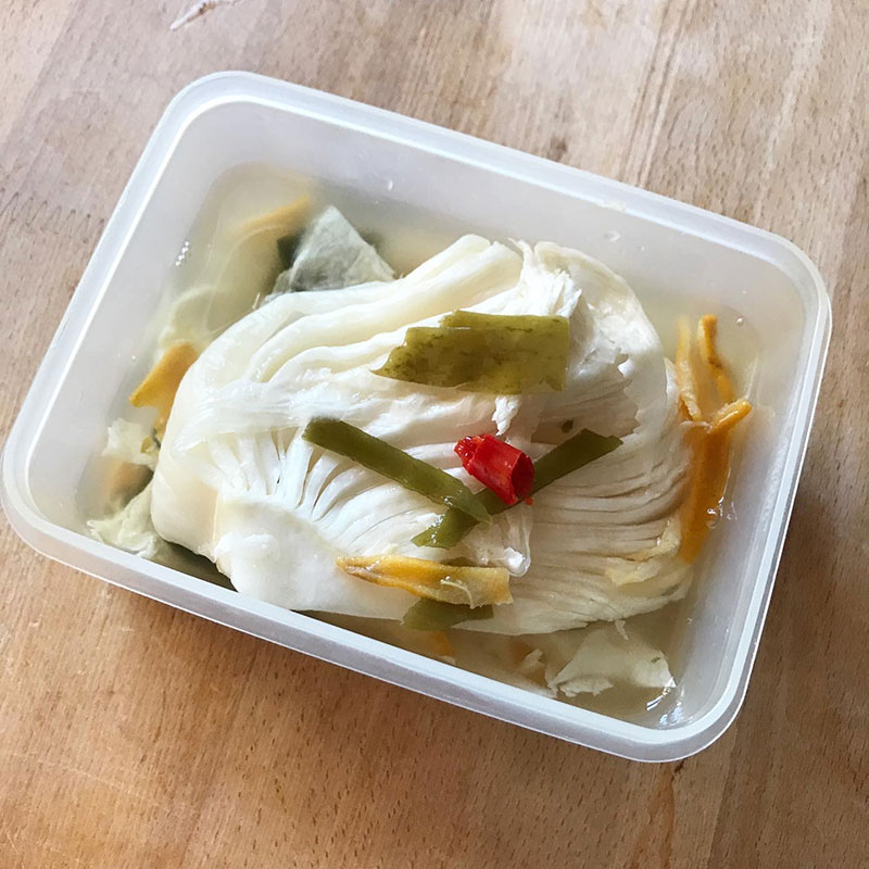 漬けて常温で2日目のなめ茸の軸、というか石づきを除いた下半分のぬか漬け。初めてだけど人気なのわかる。 これは美味しい。ステーキにしても美味しいらしいのでやってみよう。