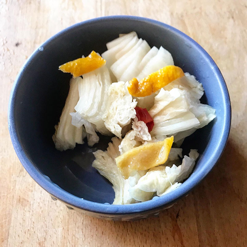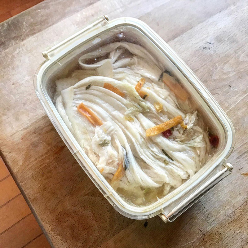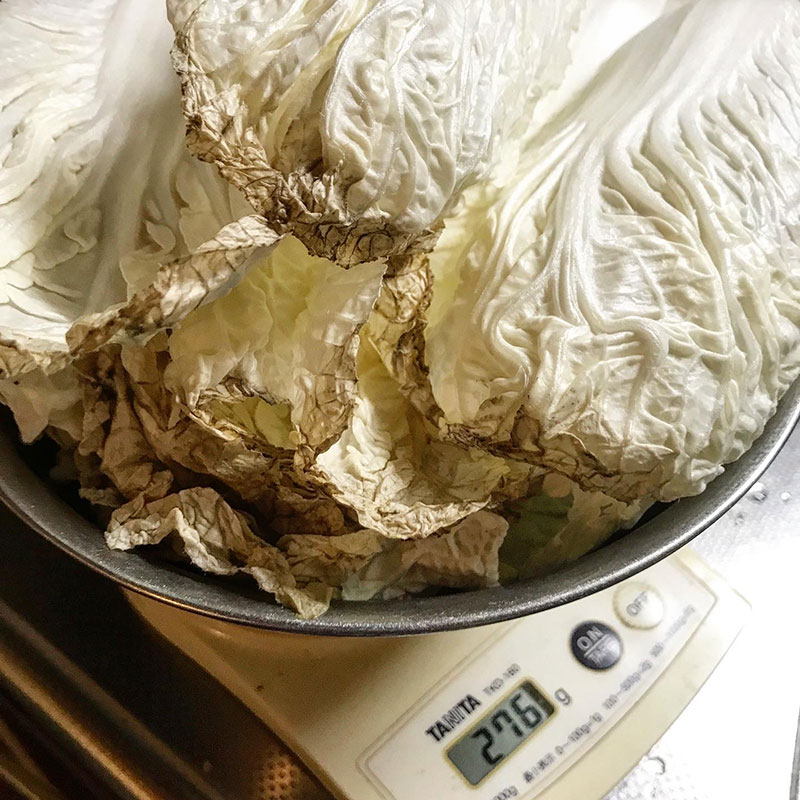 陽気で痛むのが心配で冷蔵庫に移した白菜漬け。これ食べると