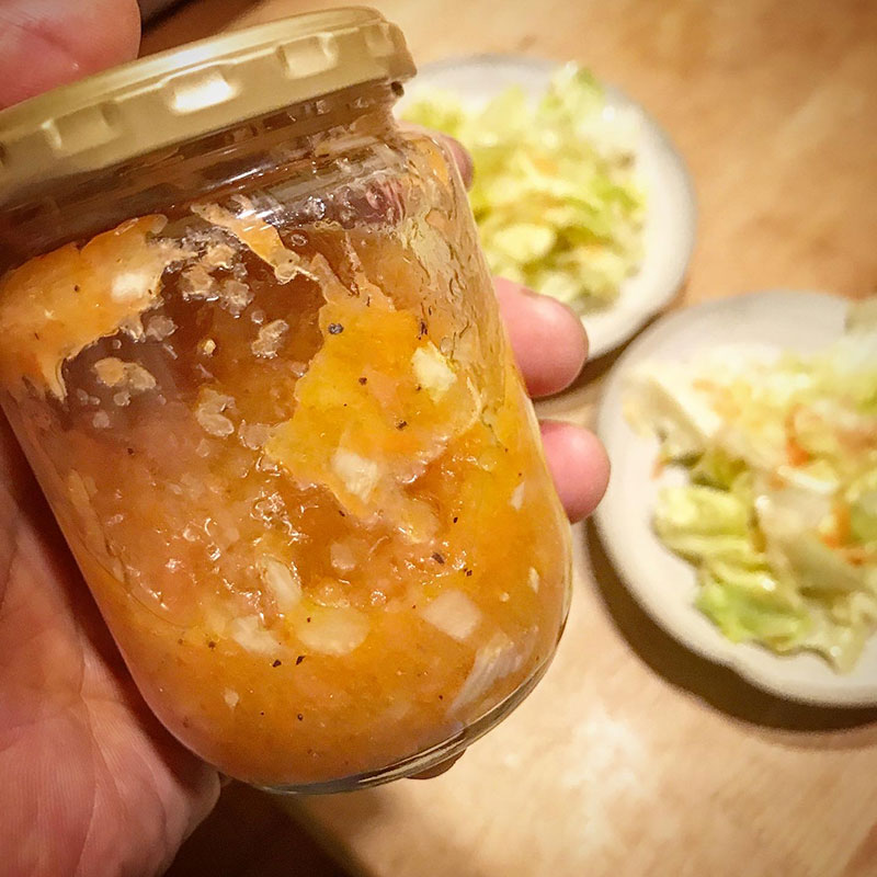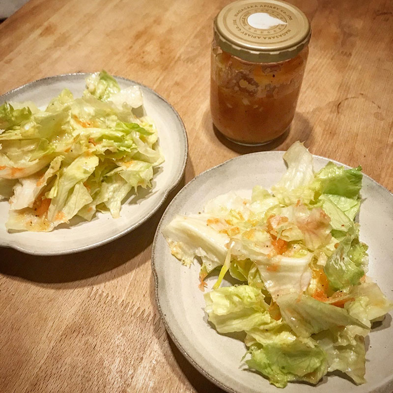 昨日作ったニンジンと玉ねぎをすりおろして作ったドレッシングのサラダ。