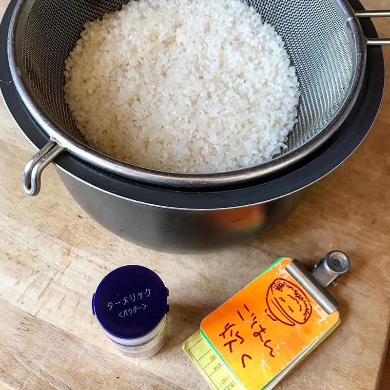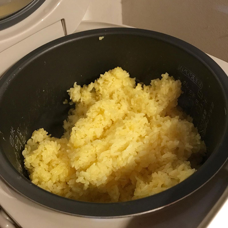 仕事から帰ったらすぐターメリックライス炊ける様に米も研いでおいた。浸水してふっくら炊けたご飯、そのまま食べるには良いけどカレーにはもっとさっぱり炊きたいのだ。