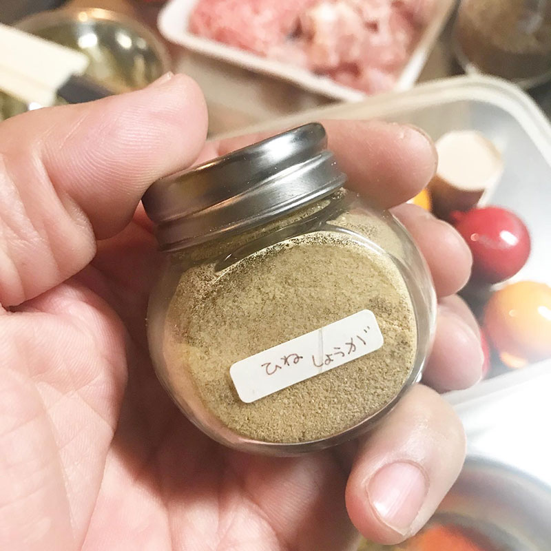 不耕起無農薬のみどりさんの生姜をあやこさんがひねしょうがにしたものをもらったので、それもスパイスのひとつとしてたっぷりめに入れてみた。