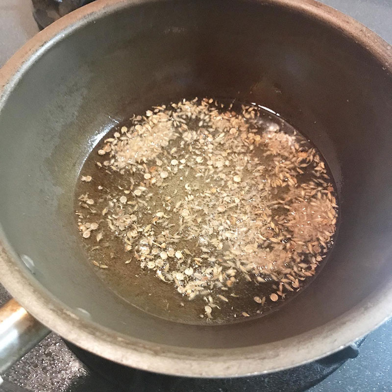 クミンシードと共にオリーブオイルに。
