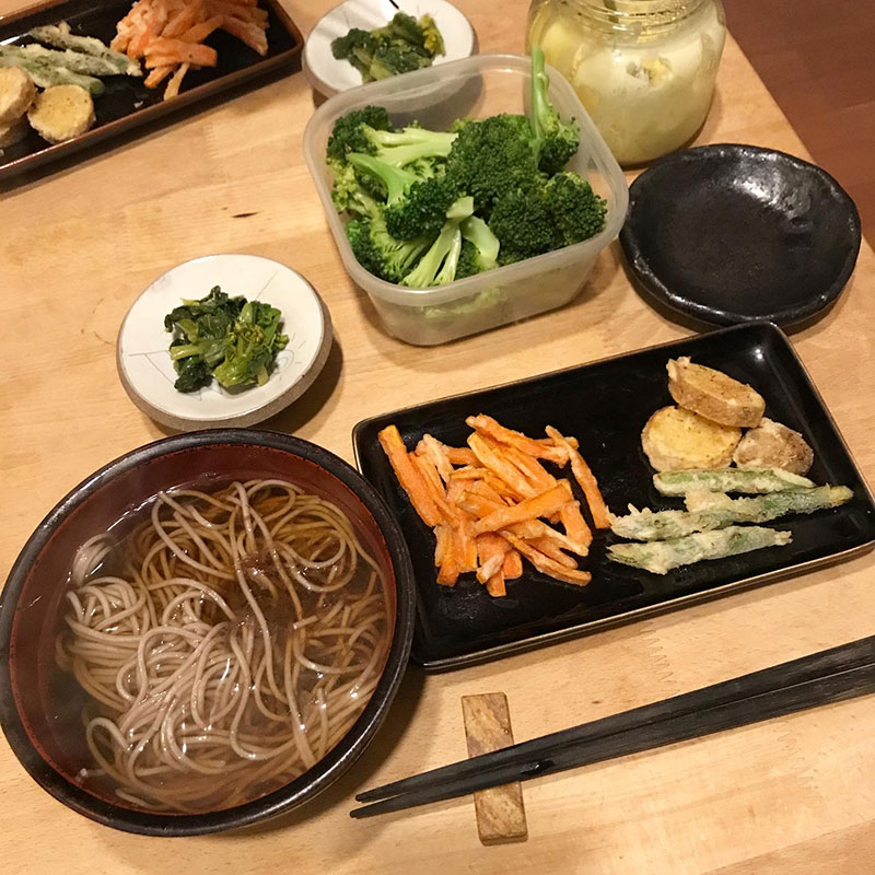 #月曜日は麺曜日 カミさんが天ぷら揚げてくれたので今宵は素蕎麦。