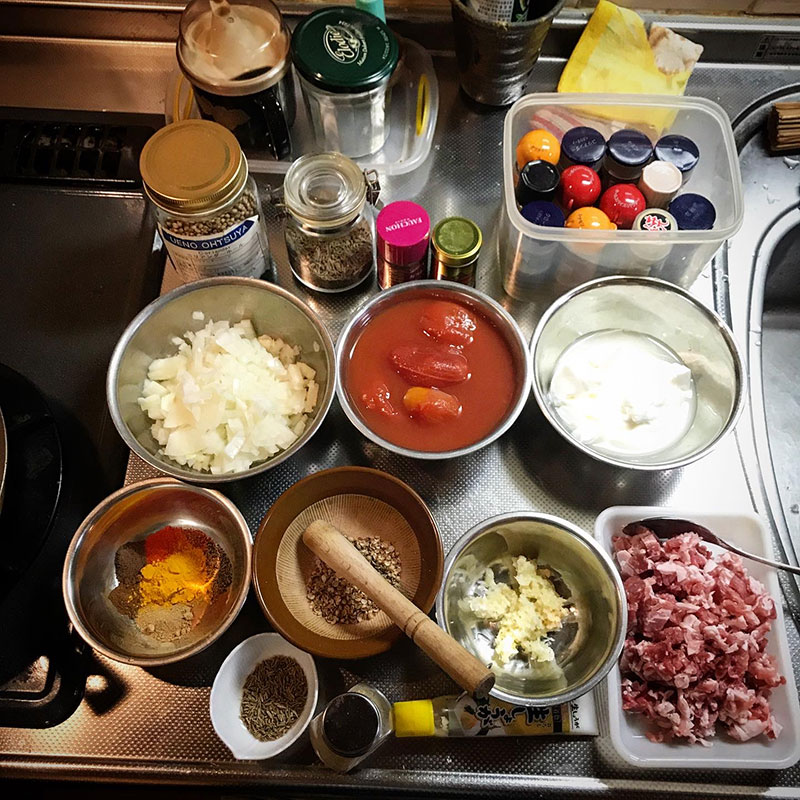 豚肉とマッシュルームのスパイスカレー仕込んだ。