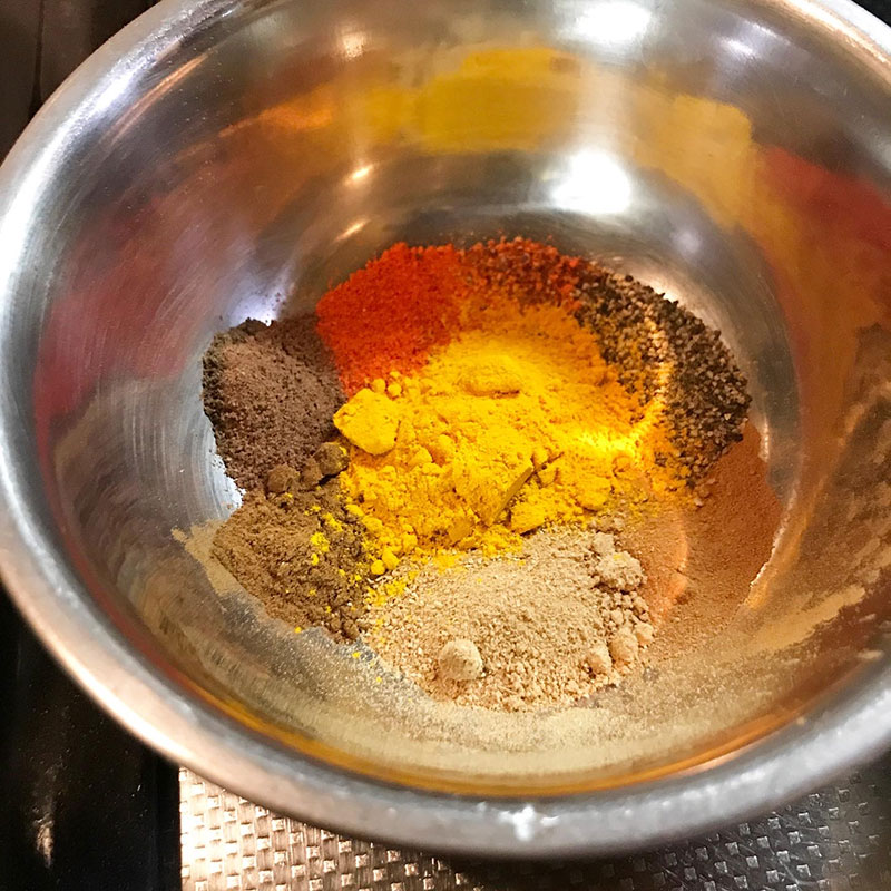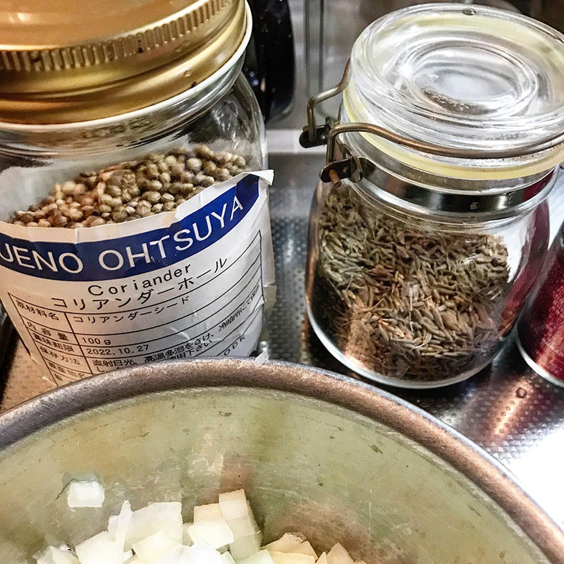 ホールで使ってるのはコリアンダーとクミン。それ以外のスパイスはパウダー。