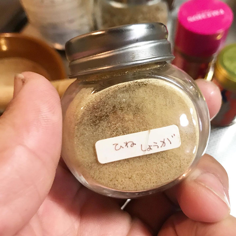 あやこさんにもらったひねしょうがもスパイスのひとつとして使う。