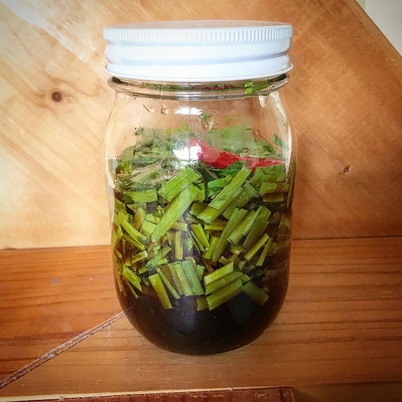 昼にニラ醤油仕込んだ。水気が残っていると保存できる期間が短くなるらしい。