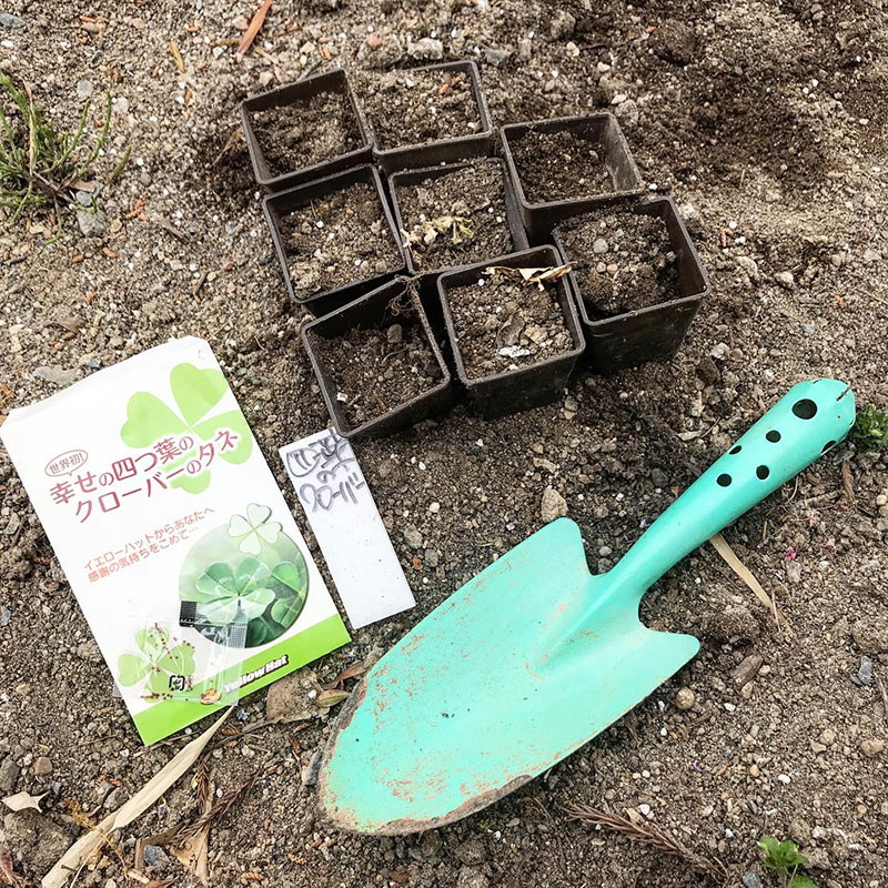 いろいろ種まき。四つ葉のクローバー。本当か?