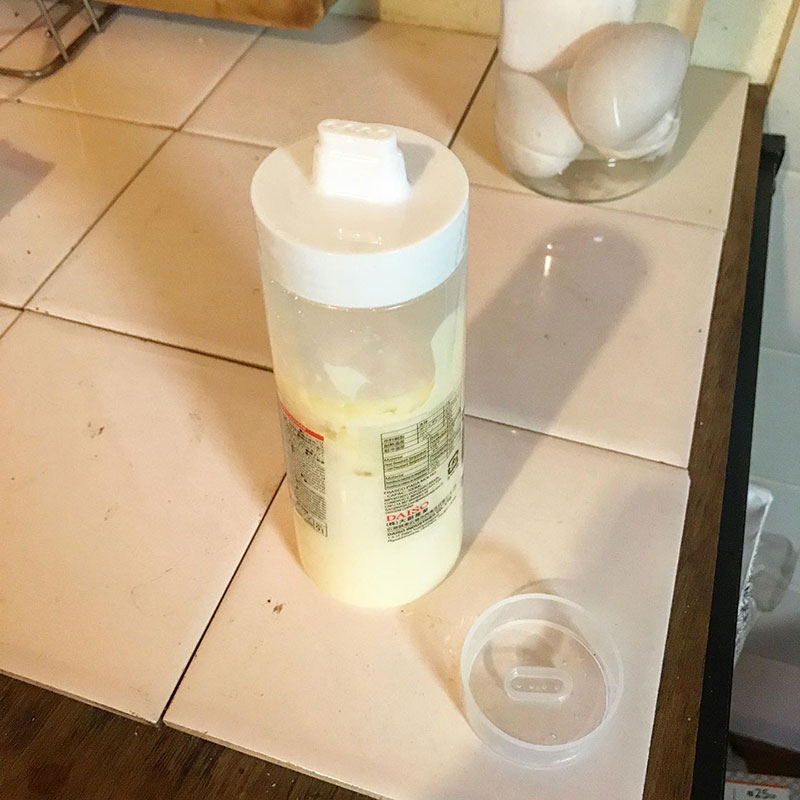 ハンドブレンダーにかけた後容器に移すのが油ぎってて本当に嫌だったのを最初からハンドブレンダーが入る口径の瓶で作って悩みは解決したと思ったんだけど、焼きそばやお好み焼きの時もスプーンですくって使うのが嫌だ。やっぱり細い線状で絞りたい。