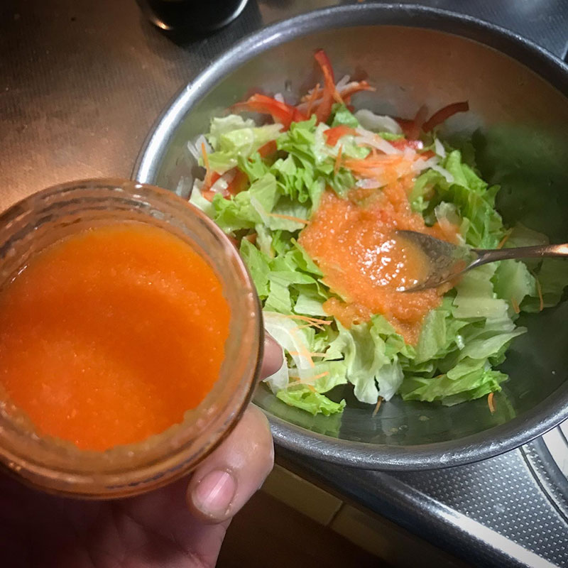 にんじんと玉ねぎすりおろして作ったドレッシング、