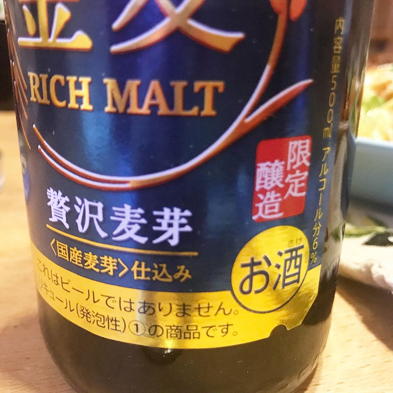 瓶詰めの限定醸造の金麦。