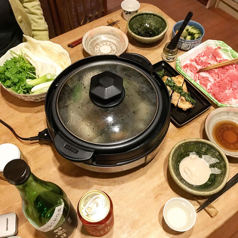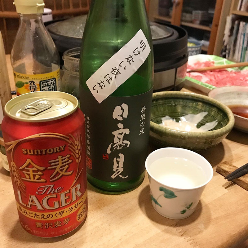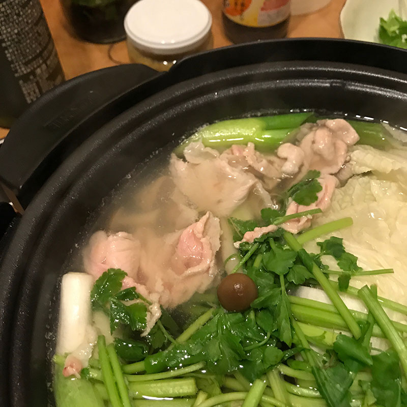 居酒屋我家、開店。先日、近所の方に(多分今シーズン最後の)白菜をいただいたし久しぶりの雨で鍋。
