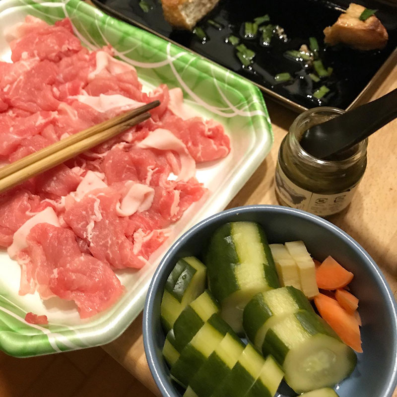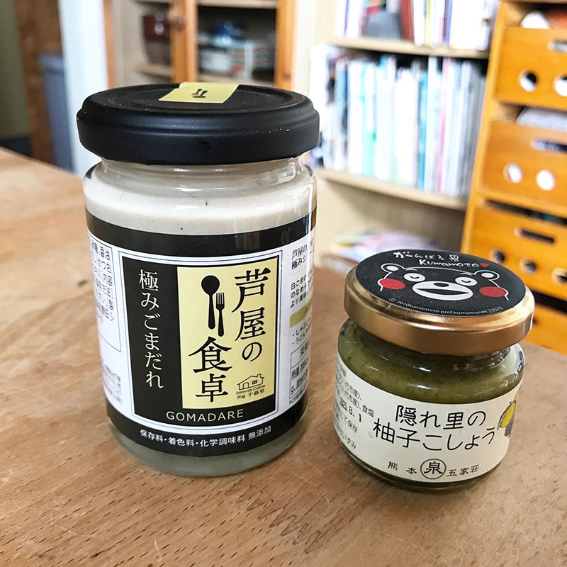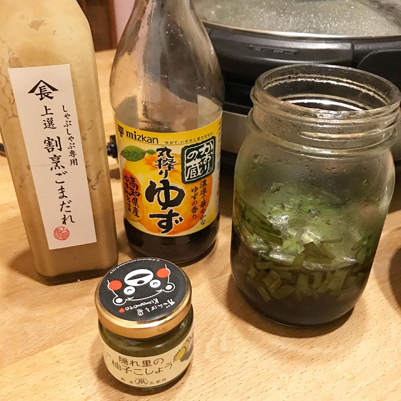 最初、柚子ポンや幼なじみがくれた胡麻だれと九州の柚子胡椒で食べたらすぐに両方合わせてしまって