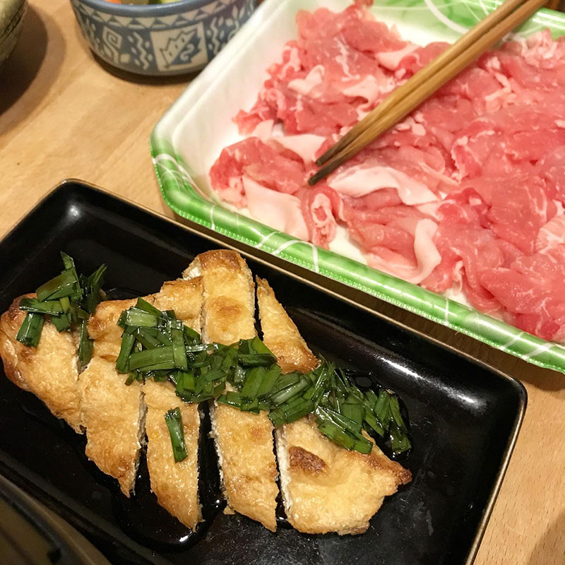 三角揚げをサクサクに焼いてこれにもニラ醤油かけたら美味しいこと、美味しいこと。