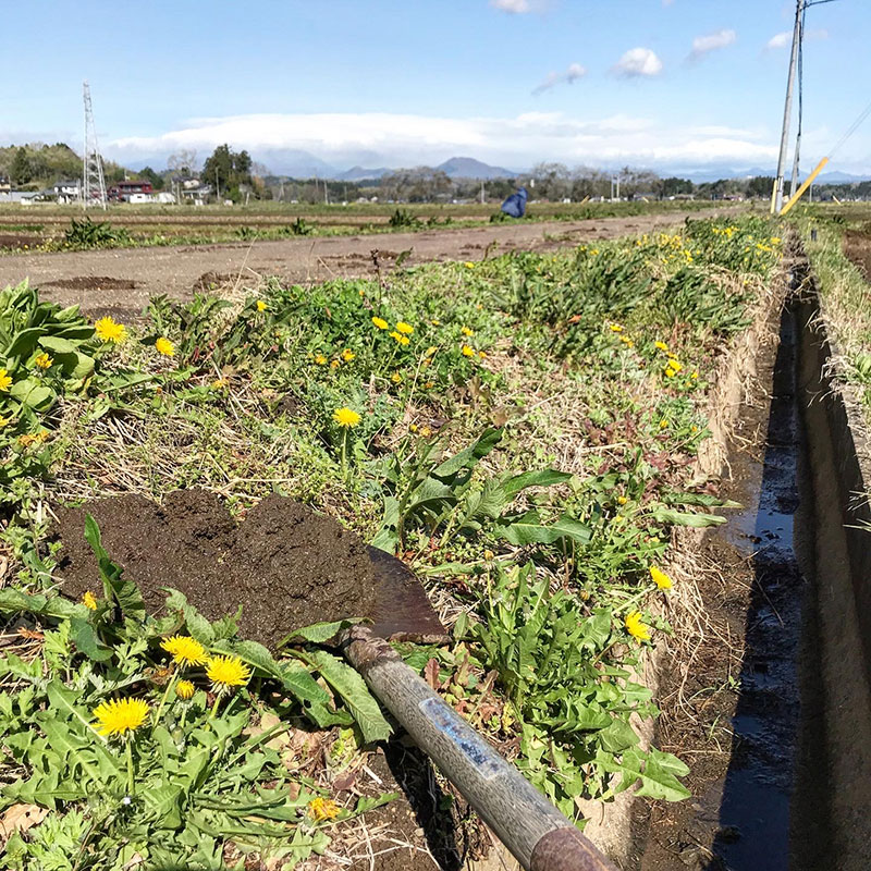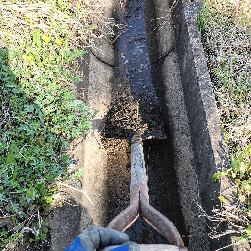 朝8時から部落の共同作業。田んぼの用水路の泥上げ。
