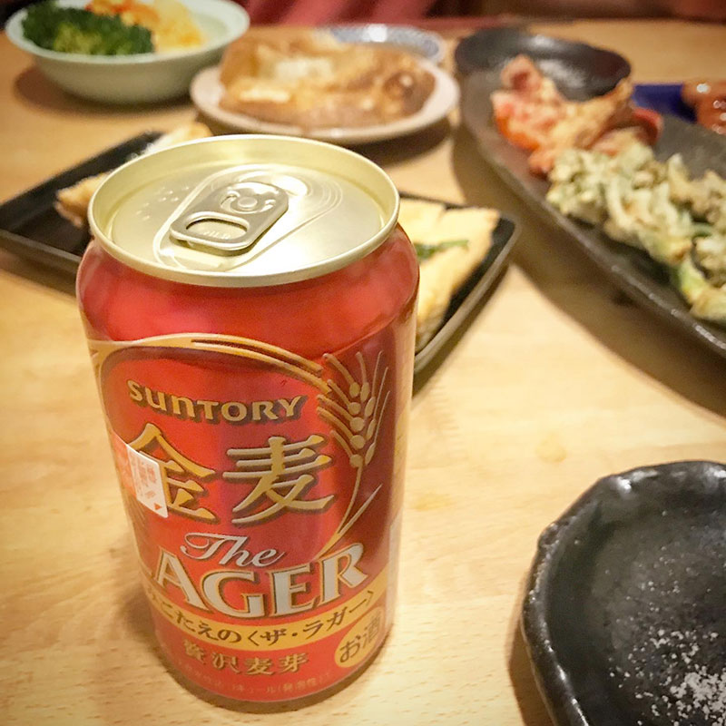 あまりの居酒屋メニューで珍しくカミさんが赤ワイン飲まないで金麦注いでって。