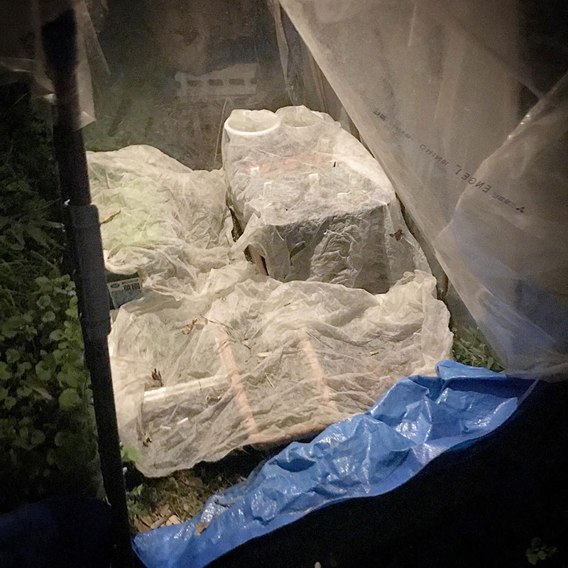 明日の朝は霜が降りるかもしれないのでミニハウスの中で芽を出したばかりのポットの野菜達に不繊布をかけておく。先日の強い霜で山形県の果樹などの被害が出たらしい。