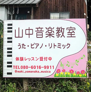 カミさんの主宰する音楽教室「山中音楽教室」の家の前の看板が新しくなった。