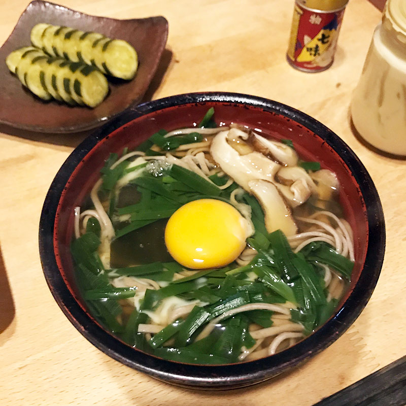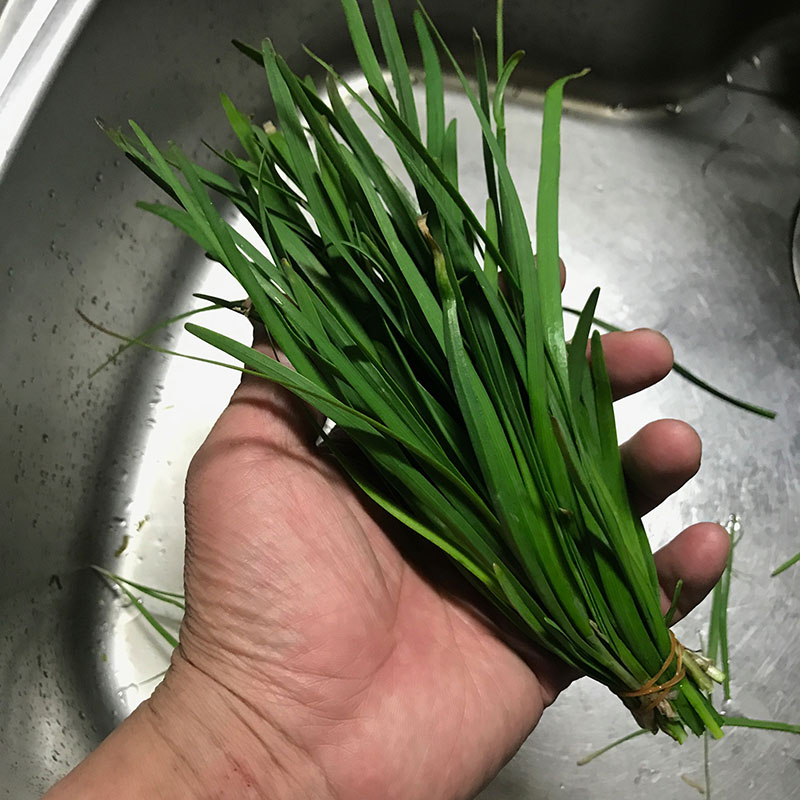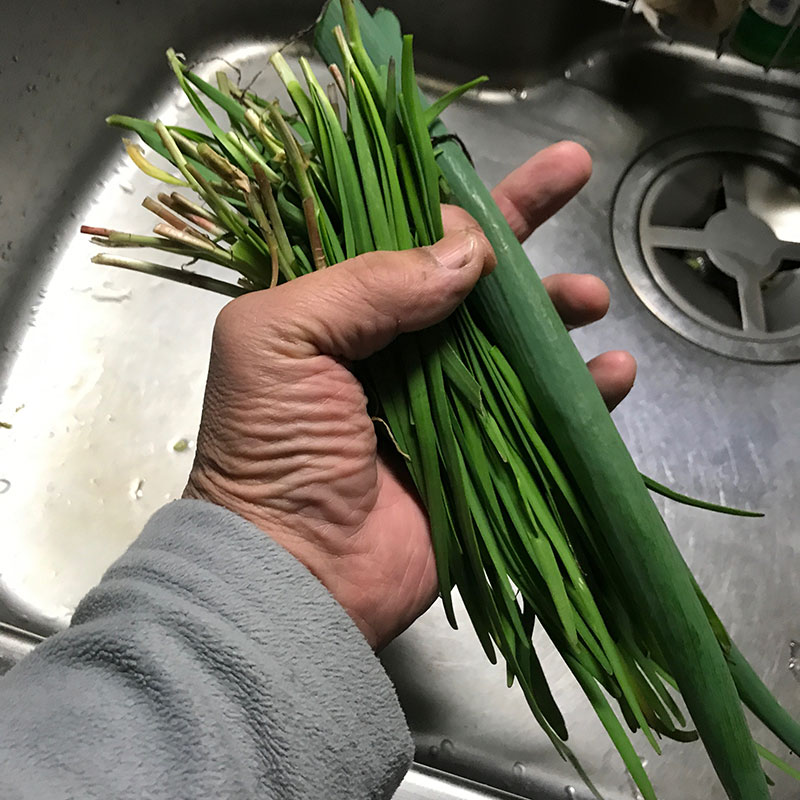 毎年、勝手に生えてきてくれるニラを収穫して蕎麦に。
