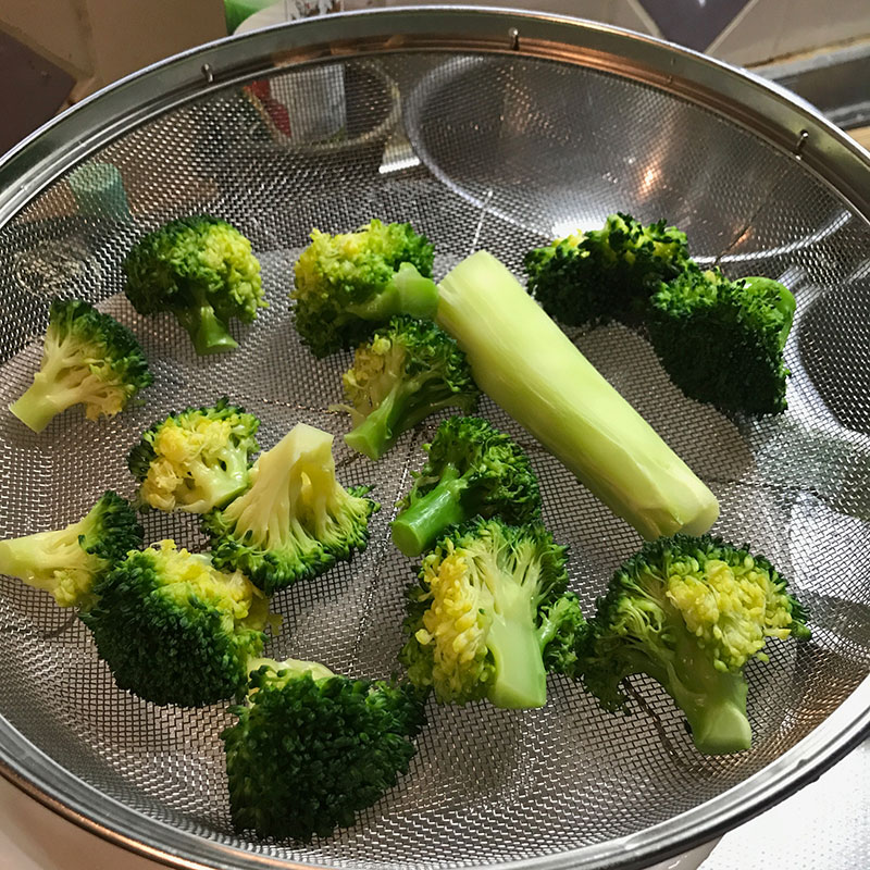 2分半蒸してうちわで急冷したブロッコリー。(茎はぬか漬け)