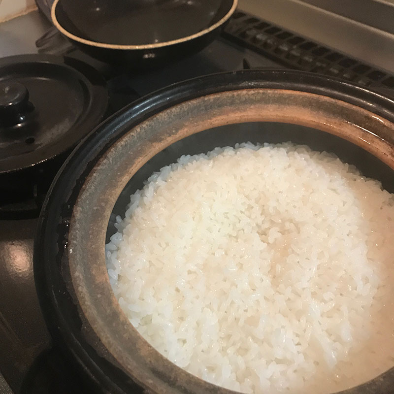 米を美味しく炊くために作られた土鍋で米を炊く。鍋に対して少なめの方が美味しいので今日は3合。強火で炊いて10分程で沸騰し始めたら