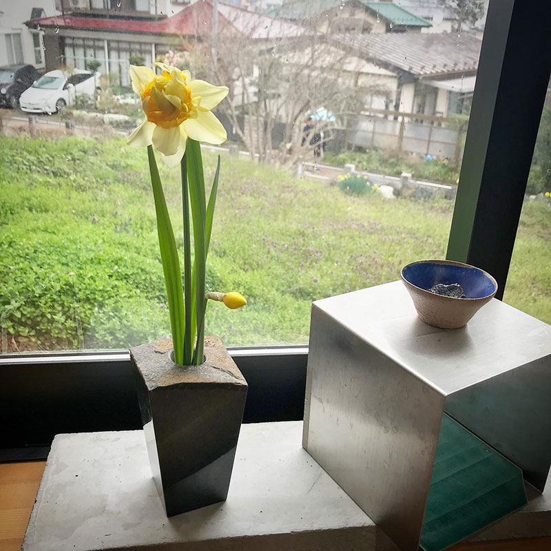 僕の作った伊達冠石の一輪挿し”大地”も百合を挿して飾っていてくれて嬉しい。これから楽しみだね、オープンおめでとう!!