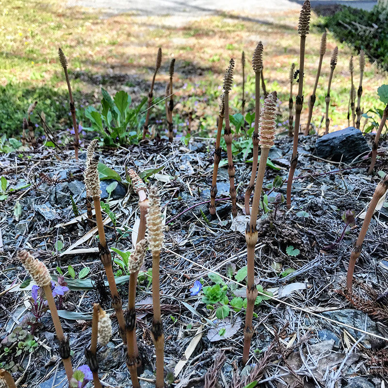 庭のつくし。ある一画だけに生えている。つくしは酸性の土壌に生えるんだって。