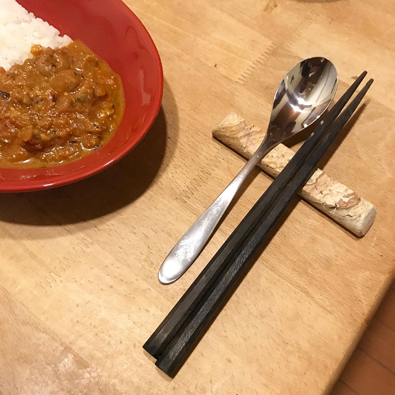 天草木目石で作った箸とスプーンを置ける箸置き。