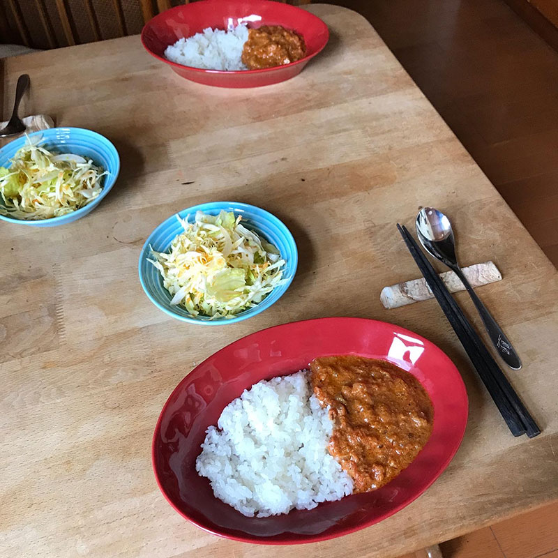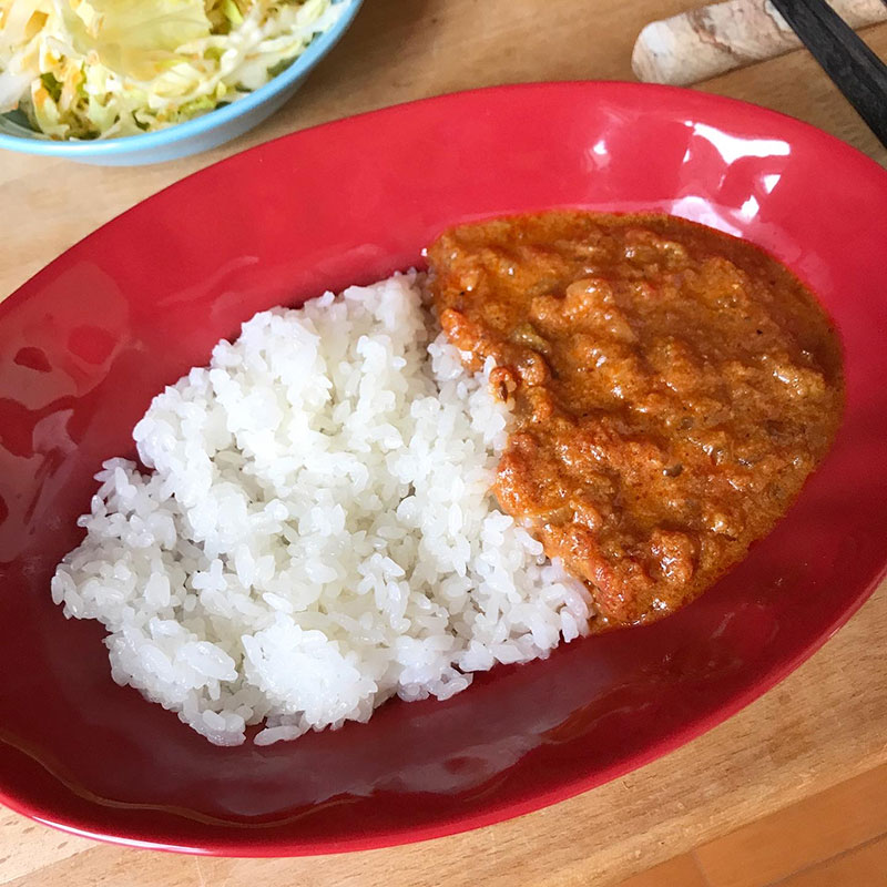 昨日仕込んだシーフードスパイスカレーのランチ。