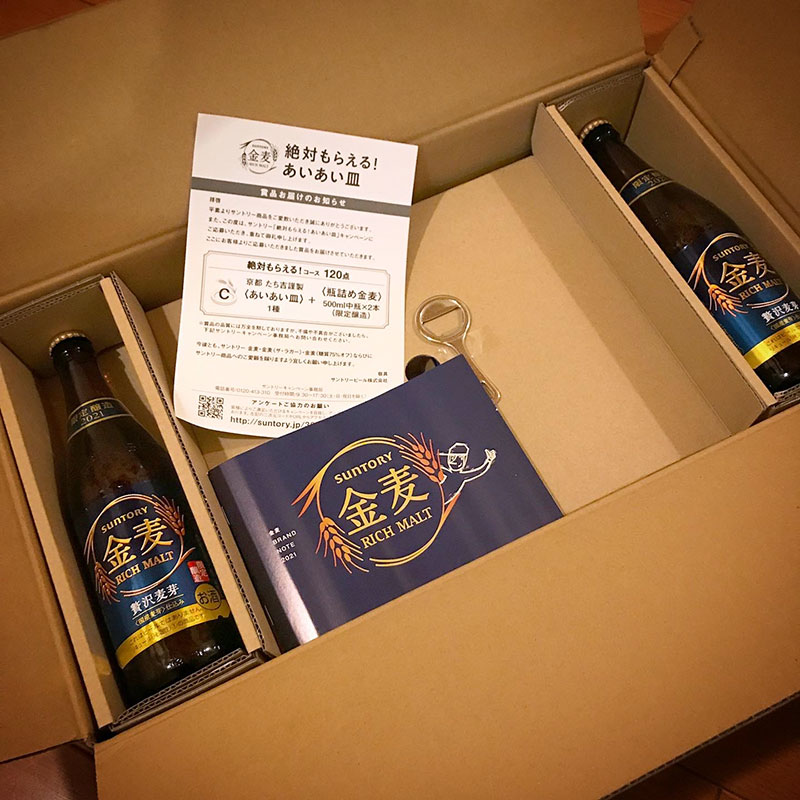 全部取っておくのでキャンペーンの開始の時にはすでにたくさん貯まってるので応募受付開始と共に2回分応募した。また瓶詰め金麦飲める・笑