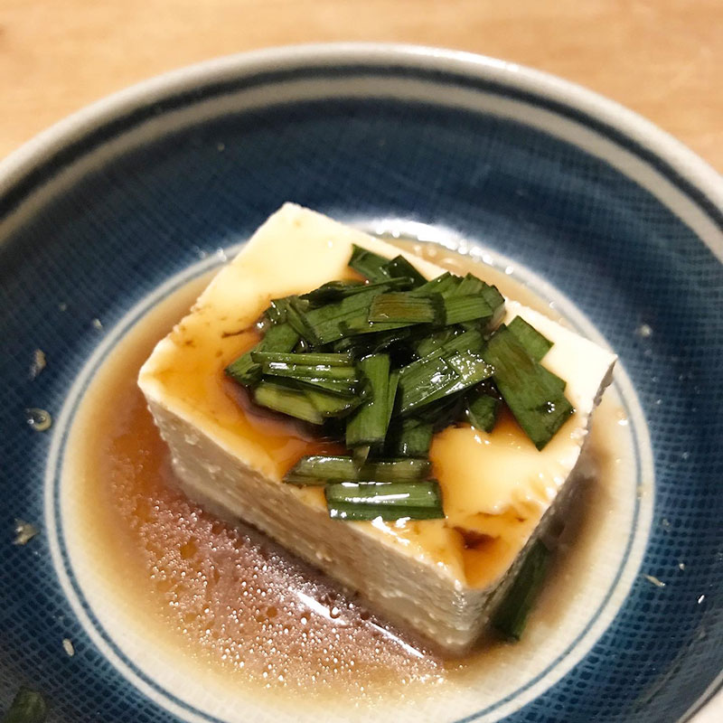 自家製のニラ醤油で木綿の湯豆腐。