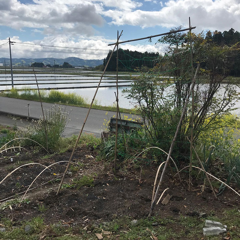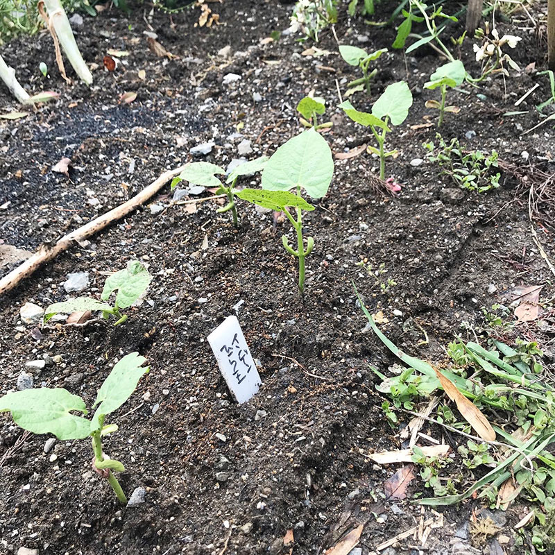 移植した後すぐに雨が降ってインゲン豆は元気。