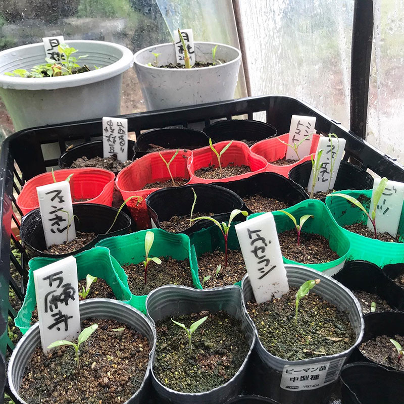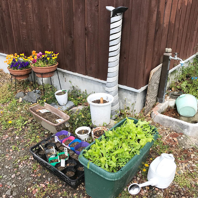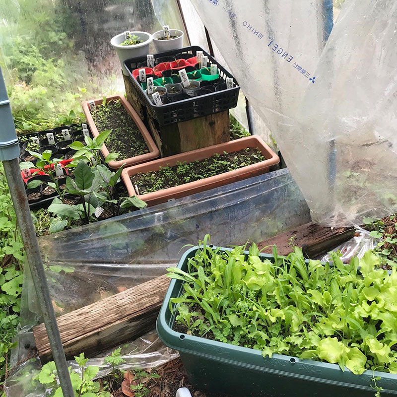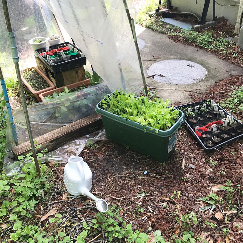 プランターに種をまいてミニハウスで育ててたサラダ様の葉、