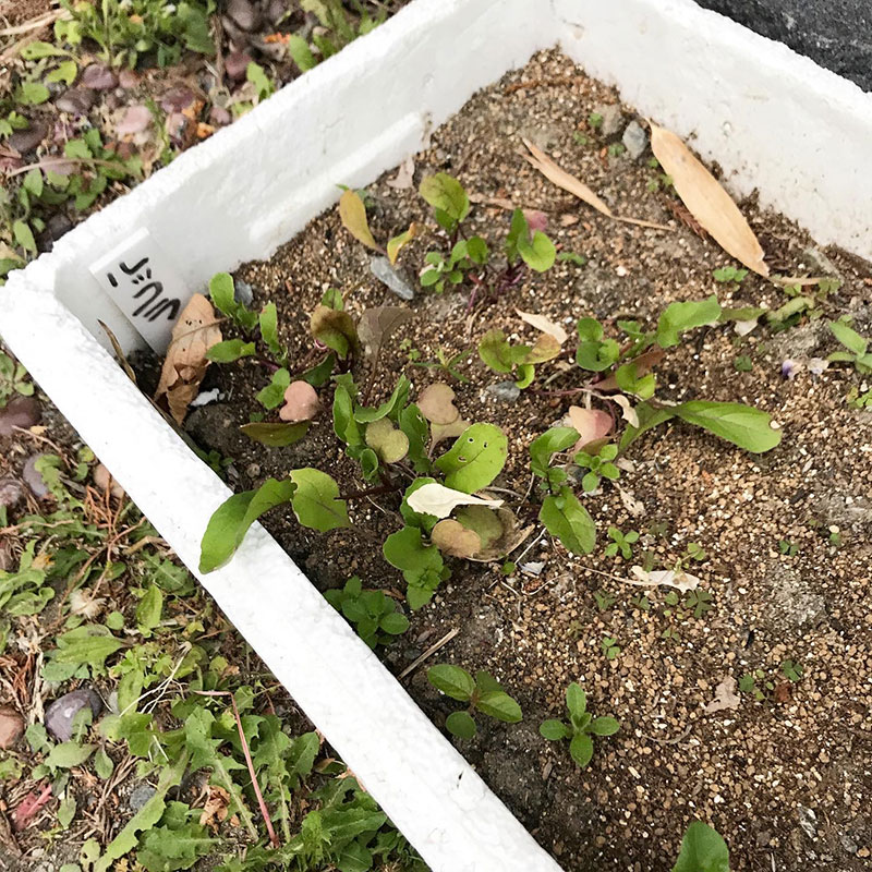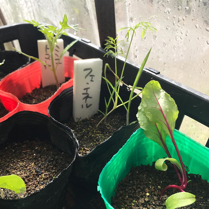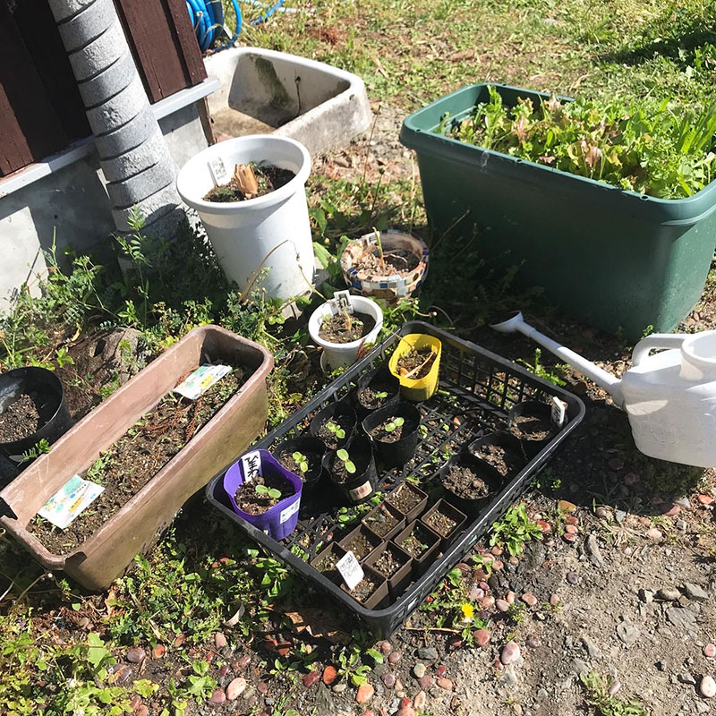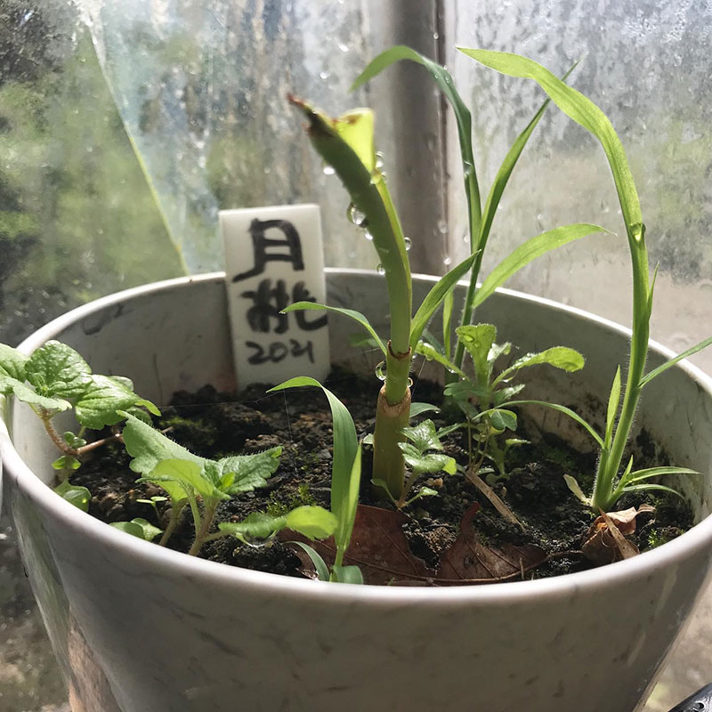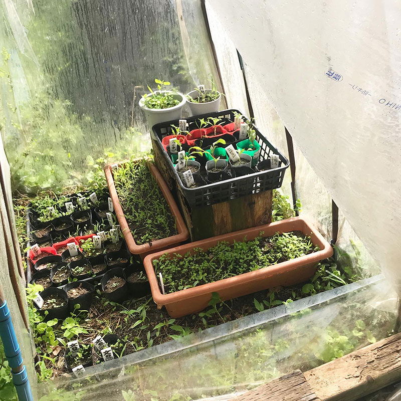 #庭の猫の額ハウスの中では自家採種した苗もどんどん育ってる。