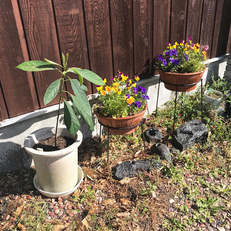 名護市から来ていくつかの鉢に植えた月桃も根強いて緑の葉を伸ばしてる。