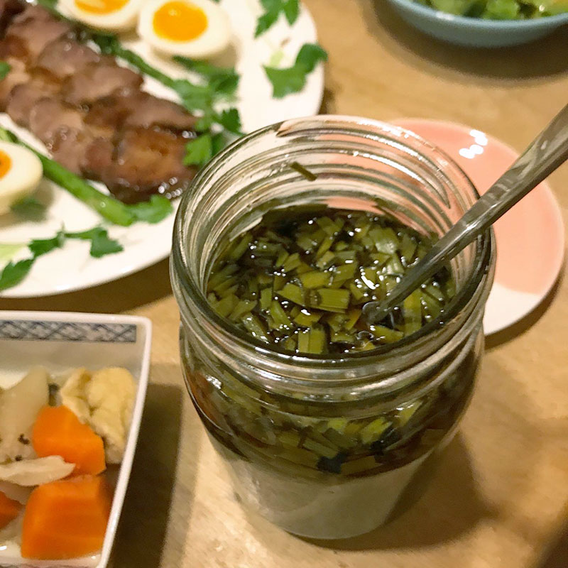 畑のニラで仕込んだニラ醤油で