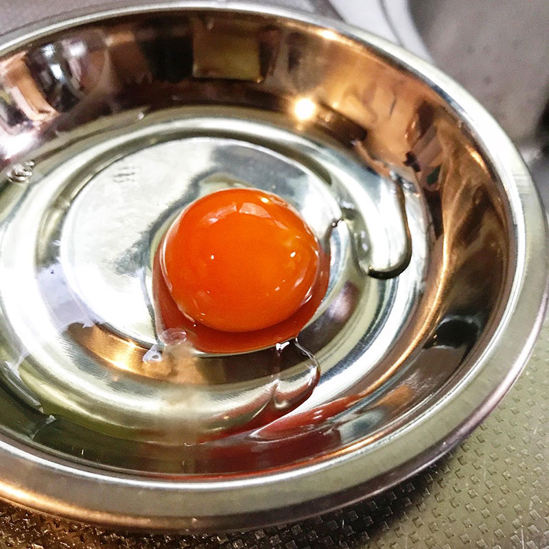 割った卵の黄身は浸透圧の関係でぷっくり。だけどそれほど塩味は入ってない。白身は水の様になっていて塩っぱい。