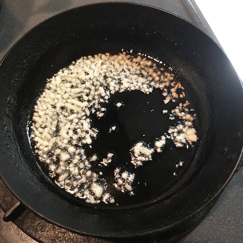 ニンニクのみじん切りと共にオリーブオイルで炒めるだけ。