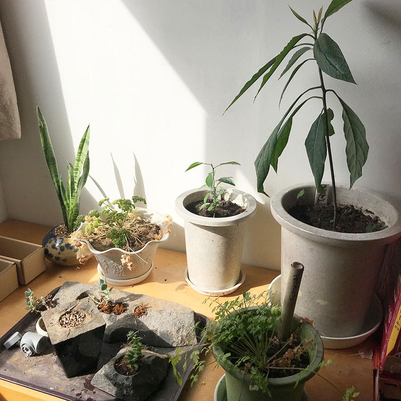 名護市からMaoさんが贈ってくれた月桃。青い芽が伸びてる!東北で!!嬉しい!!!