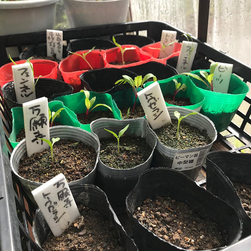 自家製柚子胡椒作るための万願寺とうがらしの苗や