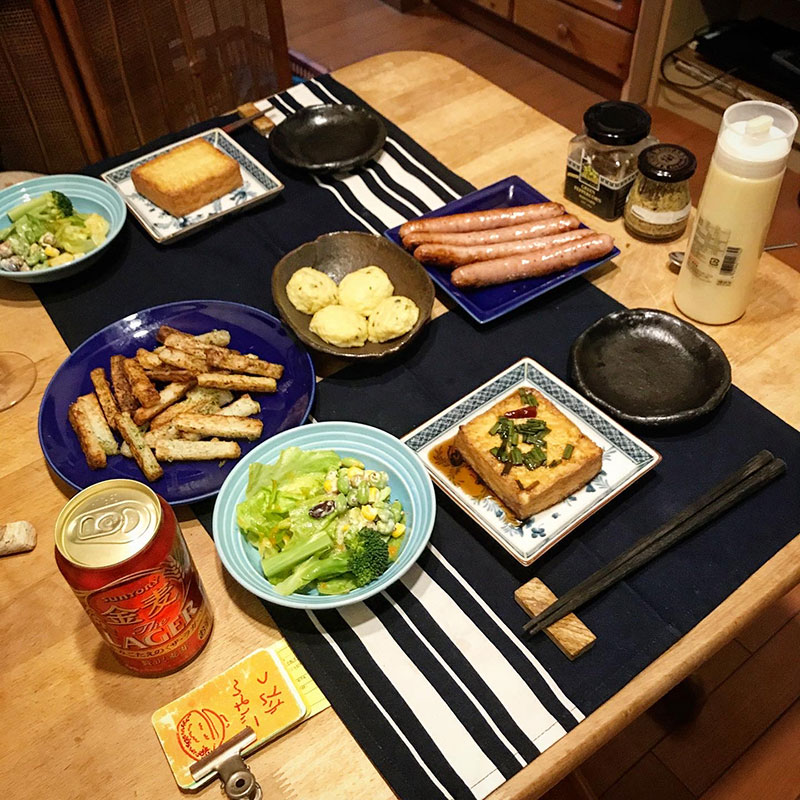 居酒屋我家、開店。仕事から戻ったらカミさんが全部用意してくれてた。そして全部居酒屋メニュー・嬉