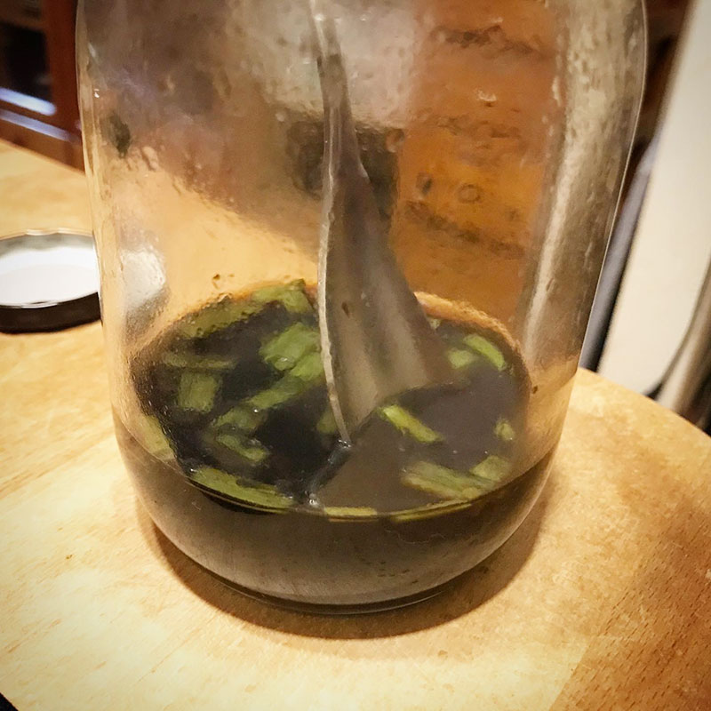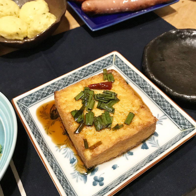 絹の揚げ豆腐に自家製ニラ醤油かければ