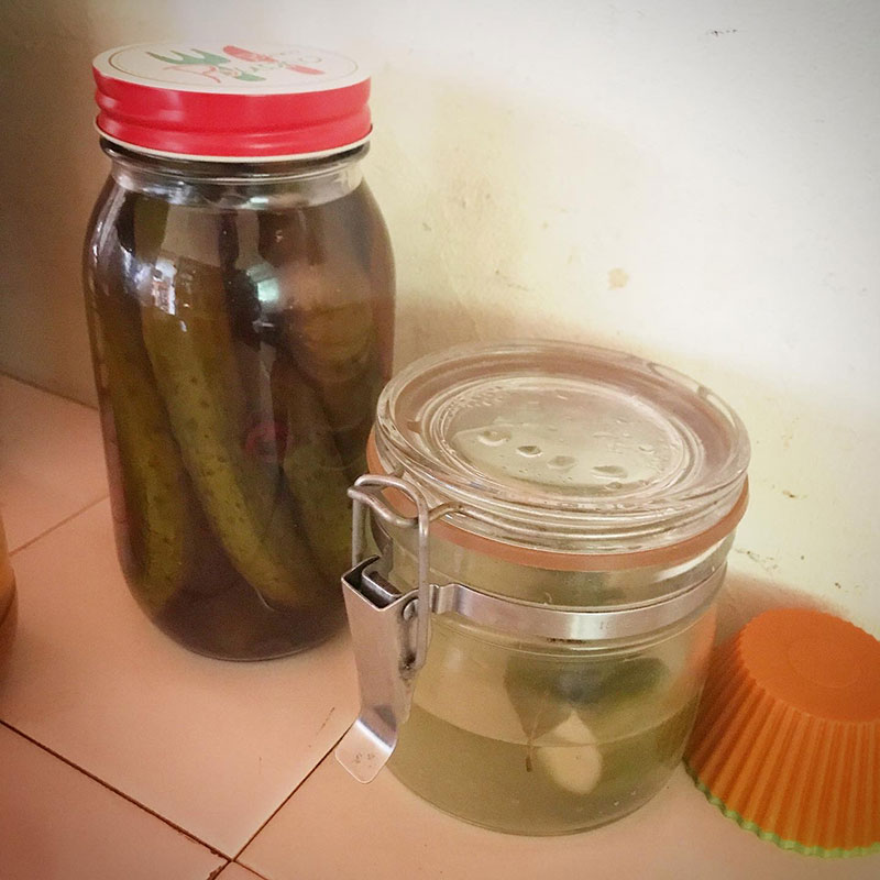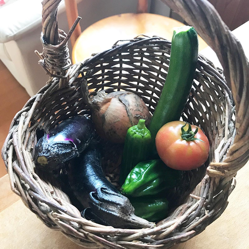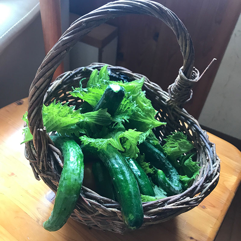 今日も近所の方にお昼に畑から帰ってくる途中我が家に収穫のお裾分けしていただいた。きゅうり、茄子、トマト、大葉。畑のきゅうりは実がなり始めた途端(多分もぐらにやられて)枯れてしまって新たに苗を植えたところ。だけどありがたいことに連日いただいていろいろ仕込んでる。