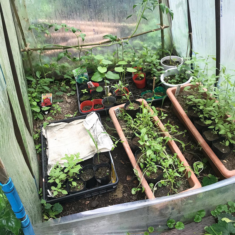 ミニハウスの中の苗、