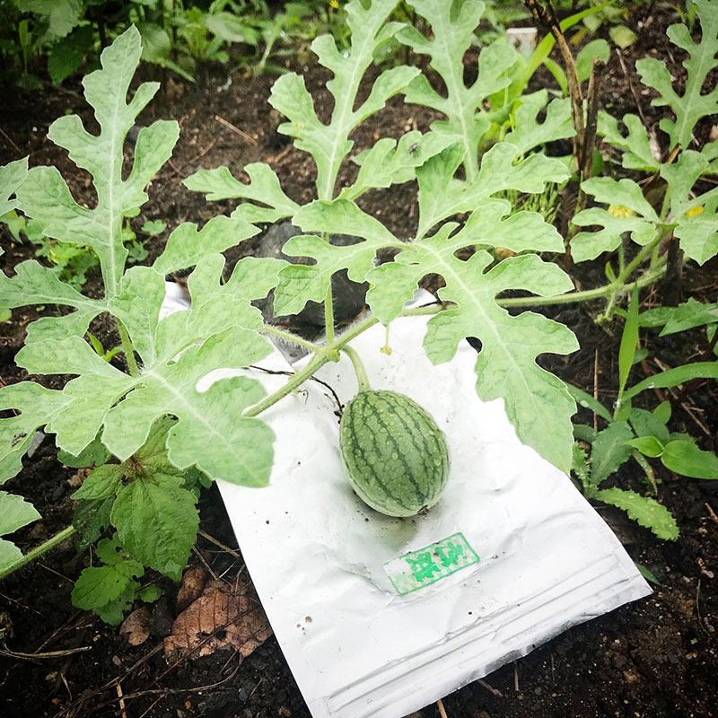 畑のスイカ少しずつ大きくなってる。