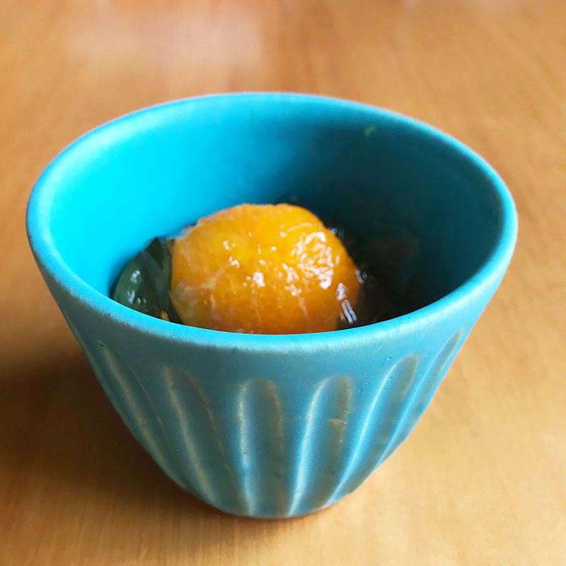 先日、エミシ工房ギャラリーのうつわ展で買ったトルコ釉のブルーの器にみかんゼリー入れてみた。パァっと食卓が明るくなった。