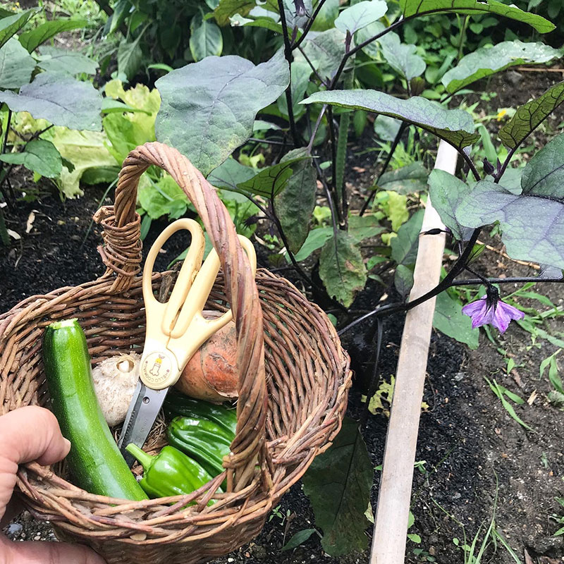 採れたての茄子とトマトをいただいたので畑からパプリカ代わりのピーマンとズッキーニ 収穫して、