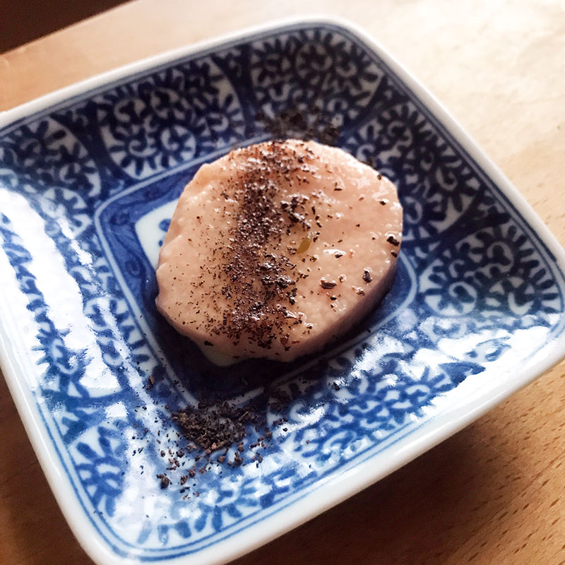 昼の一品。山芋の梅酢漬け。自家製ゆかりかけ。