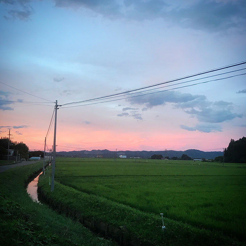 東の空が焼けるのは珍しいので外に出てみた。いつも綺麗な西の空の夕日が見られる家の裏に行ってみたら
