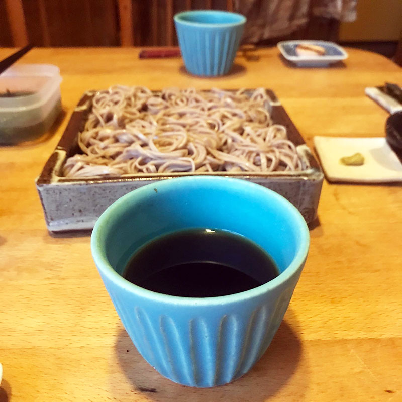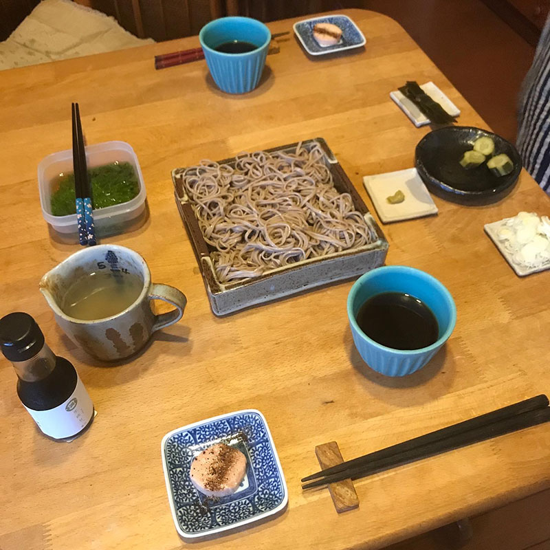 土日の酒飲み、食べ過ぎをリセット。月曜日は基本麺。それもほとんど蕎麦の夕食。今宵も。大学時代の友だちの素子さんの器に蕎麦を盛り、